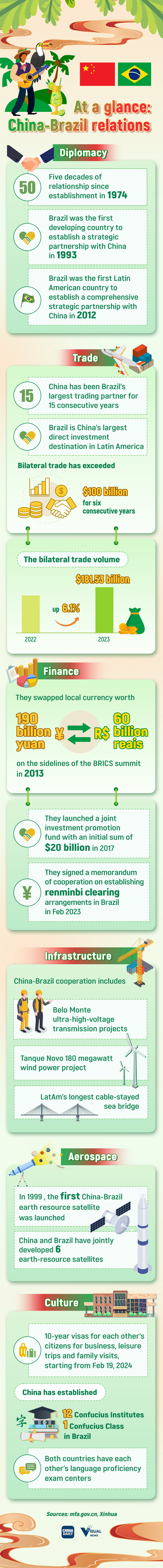 Over the past 50 years, China and Brazil have achieved significant cooperation in various fields. What does the cooperation look like in trade, infrastructure, space technology and culture? Here's a look at the ties.
