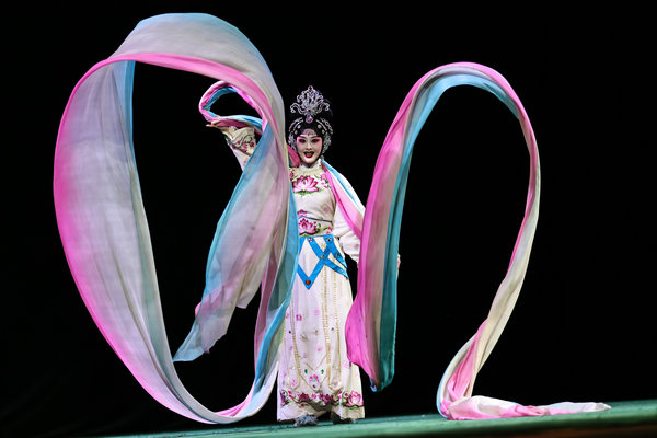 Peking Opera actress Guo Xiao has been trained to keep the performing style created by Mei. "Unlike Peking Opera pieces with stunning marital art scenes, Goddess Scattering Flowers is known for its fluid structure and musical arrangement, which reflects the beauty of the goddess' journey through the clouds," Guo said.