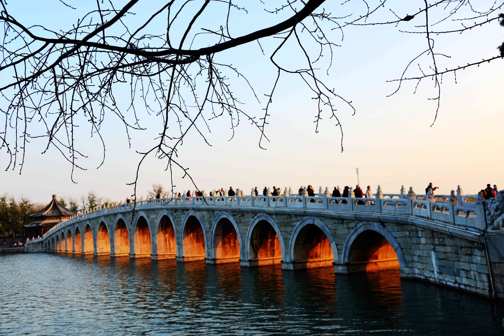 Visitors gathered at the Summer Palace in Beijing on Nov 20 to catch sight of the setting sun shining through the Seventeen-Arch Bridge over Kunming Lake. Since the Start of Winter solar term on Nov 7, the Seventeen-Arch Bridge has been lit up with this dazzling display, attracting crowds of photographers and nature lovers.