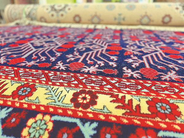 Compared to the traditional carpets with their bright, diverse colors and intricate patterns, today's consumers prefer simpler designs and low-saturated colors, he adds.