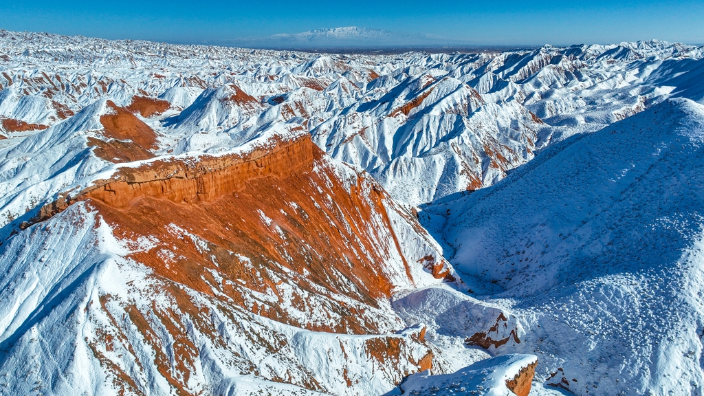 The Qicai Danxia scenic area in Zhangye, Gansu province, was recently blanketed in snow, creating a breathtakingly magnificent sight.