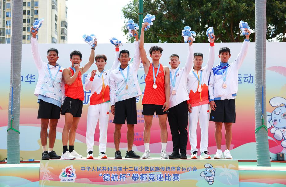 On Sunday, Luo Jun from the Hainan team won the men's 9-meter coconut tree climbing event, clocking in at just 6.188 seconds.