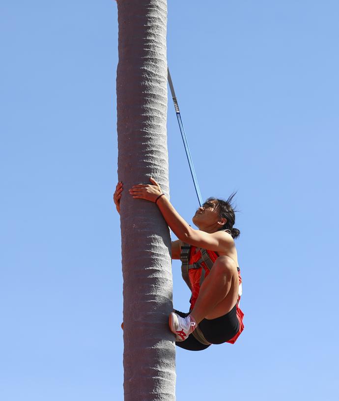 "The artificial coconut trees used in the Games are even harder to climb than real ones. They are smoother and straighter, whereas real coconut trees are more curved and provide more friction," Luo said.