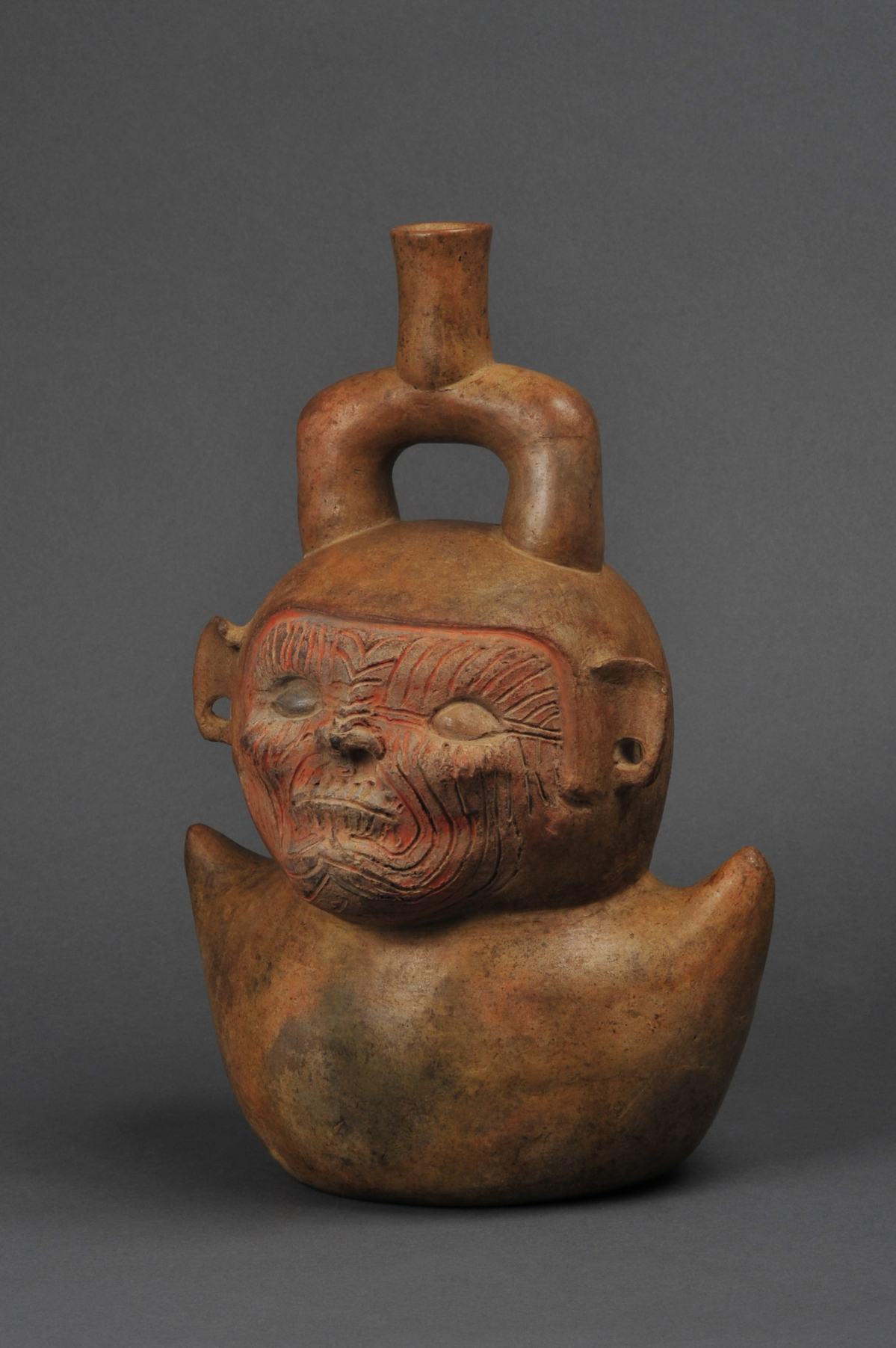 Pottery bottle with man’s face and stirrup-shaped decorations, Cupisnique culture [Photo/provided to chinaservicesinfo.com]