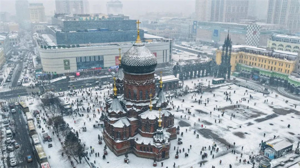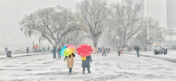 Residents and tourists alike were captivated by the charming scenery at the city's landmark scenic spots, such as Central Avenue, the Flood Control Monument Square, and the Chinese Baroque Historic Block, and enjoyed the snow's unique romantic charm.