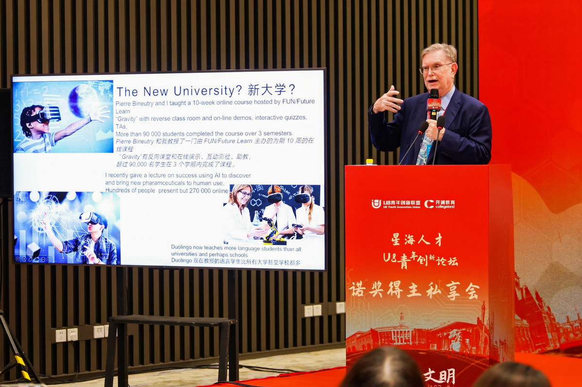 George F. Smoot gives a speech themed on education in the AI age. [Photo provided to chinadaily.com.cn]