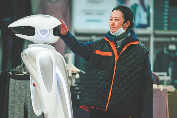 As the film approaches its conclusion, the melancholic protagonist, having eaten a steamed bun all alone, encounters an AI robot circling the supermarket where she works. The robot's greetings and comforting quotes about love and laughter from Mother Teresa and Mark Twain cause her demeanor to soften, and she smiles.