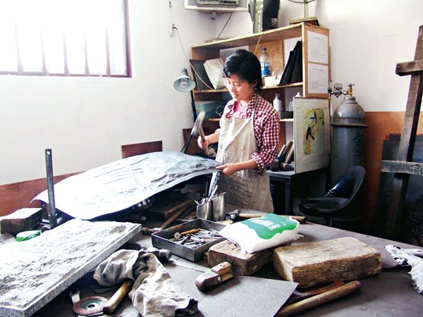 Influenced by her father, Guo Mohan was fascinated by embossed iron plates when she was young. Her life has since involved hammers, chisels and other tools for making such crafts.