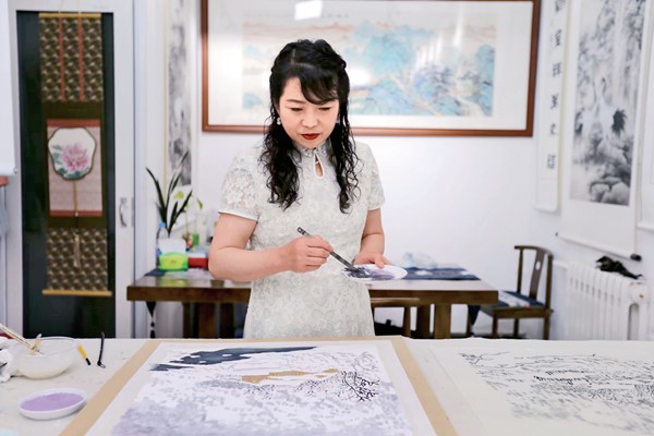 How did Wang come up with the idea of painting with salt? Salt culture in Zhangxian has a long history, she explains, and as such the locals have always had a special preference for salt. "I was born and grew up in Zhangxian. When I was a child, I saw how my grandparents made salt in the traditional way. Thus, I have a special feeling for salt. My mother is skilled at drawing and embroidering patterns. Influenced by her, I have liked drawing since I was young," recalls Wang.