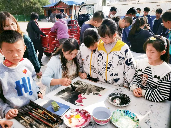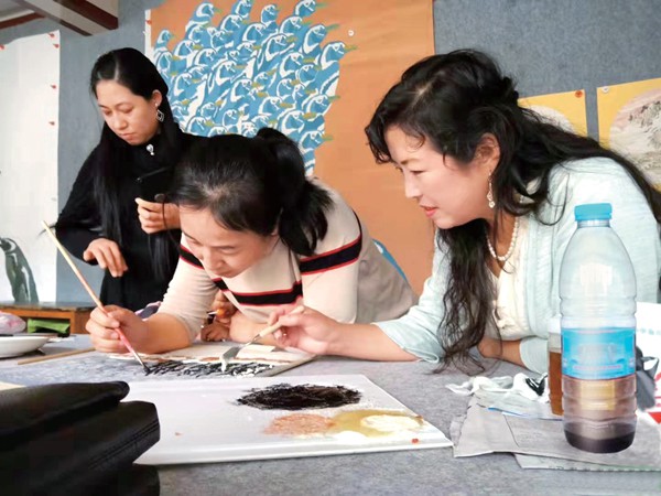 During the past few years, Wang has trained more than 200 children and rural women. Some of the women are disabled and/or single mothers. She has also given salt painting lessons during training sessions organized by local women's federations. Wang has helped local women increase their incomes by making salt paintings. In December 2019, Wang's studio was designated an Intangible Cultural Heritage Workshop for Employment and Poverty Alleviation of Gansu Province.
