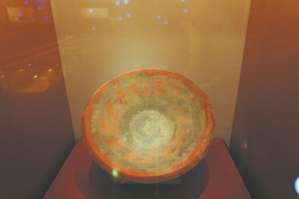 A colored pottery plate with a dragon patterns is on show at the museum. [Photo by FENG SIQUAN/FOR CHINA DAILY]