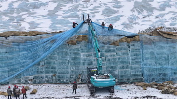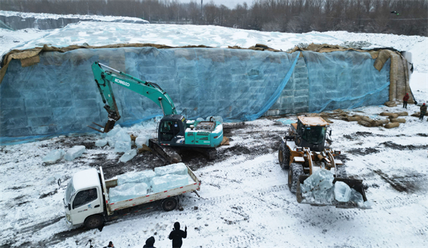 After being preserved for over 10 months, ice blocks began to be transported on Tuesday to the construction of the Harbin Ice and Snow World, one of the most popular scenic spots in Harbin, Heilongjiang province.