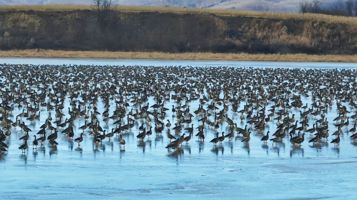 Flocks of wild geese have recently been spotted at the Jingxin Wetland in Hunchun city, Yanbian Korean autonomous prefecture in Northeast China's Jilin province. [Photo provided to chinadaily.com.cn]