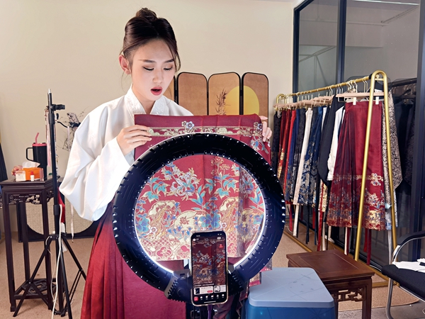 An anchor livestreaming Mamianqun designed by Liu Wenyue [Photo by Jiang Yutong]