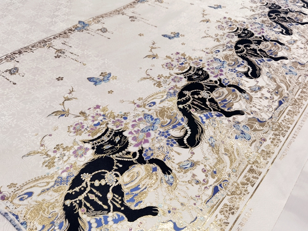 Fabric woven with the Chinese characters that mean "Mamianqun created in China" [Photo by Jiang Yutong]