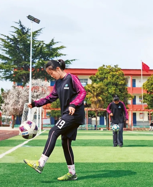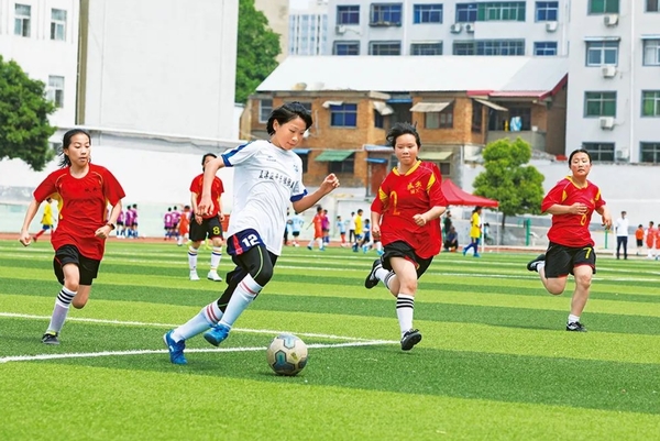 In July 2015, six government departments issued guidelines on accelerating the development of soccer on campus. Liang proposed the school organize soccer training among students, especially girls. Song agreed. Neither Song nor Liang knew much about soccer, so they had to start from scratch, including learning the basics of the game. They led students in physical-ability training while they studied — by watching videos — the rules and basic movements involved in soccer.