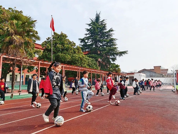 Liang Yaowu has created a "soccer exercise," which involves basic movements often used in matches. Every day, during their break, all of the students in Zhangpan Primary School, each with a ball, perform the exercise. "Soccer is an ideal way to prevent obesity and depression. It also helps children learn about goals, rules and cooperation," Song says. Now, every student has a chance to play, for their classes, in the school's soccer league. The school's officials negotiated a cooperation agreement with a sports school affiliated with a university in Luoyang. Students majoring in soccer at the sports school will help train students attending Zhangpan Primary School.