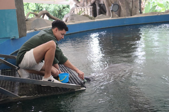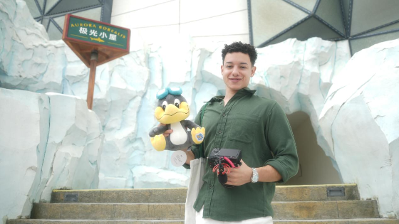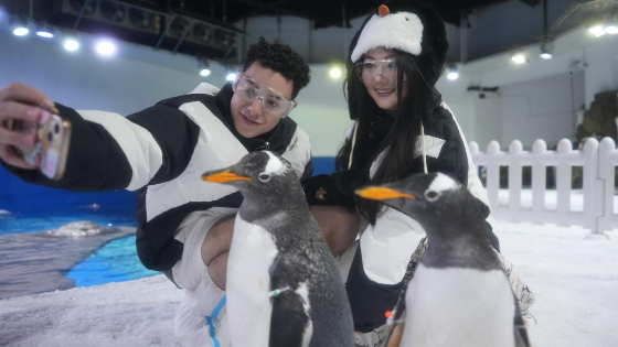 As the gloaming light of sunset colors the sky, a new and dazzling scene is created, the joyful sounds of night echo across the park, and Dora and Harvey checked in at the park's Ice and Snow World - the tropics' largest polar pavilion. While there, they not only got to experience the sudden change between summer and winter, they also got to feed the gentoo penguins.