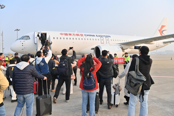 With 159 passengers onboard, China Eastern Airlines' ninth C919 jetliner was welcomed with a conventional water salute at the Chongqing Jiangbei International Airport on December 3, marking the inaugural commercial flight of China's first self-developed jet to the city in the southwest of the country. [Photot provided to China Daily]