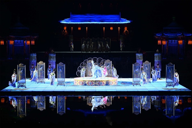 The 2024 production of the Song of Everlasting Regret made its debut in Huaqing Palace at the foot of Lishan Mountain in Lintong district, Xi'an, in Northwest China's Shaanxi province on Sunday.