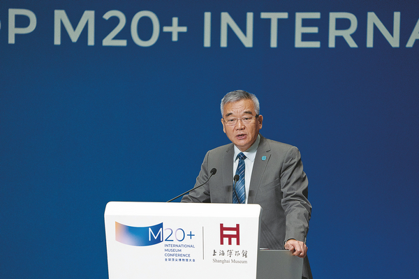 Liu Shuguang, chairman of the Chinese Museums Association, speaks at the M20+ International Museum Conference in Shanghai on Tuesday. GAO ERQIANG/CHINA DAILY