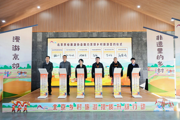 Beijing Folklore Travel Association signs cooperation agreements with districts in Beijing to explore ways of using ICH to empower rural tourism. [Photo provided to chinadaily.com.cn]
