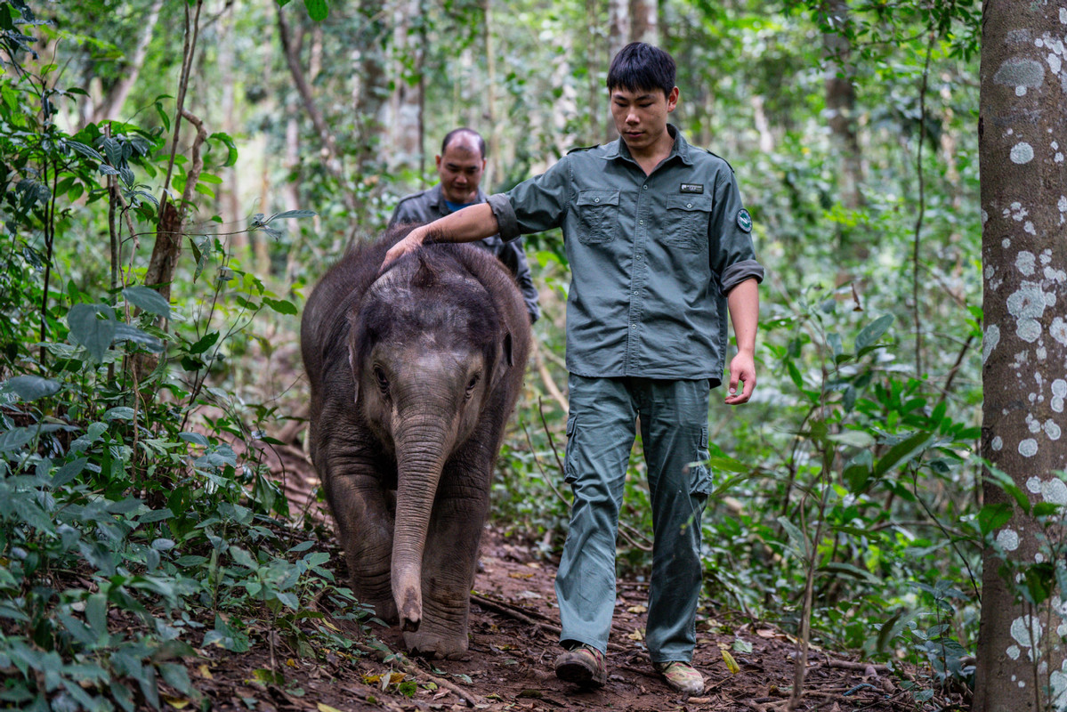 The Xishuangbanna Asian Elephant Breeding and Rescue Center said the injured calf was found in August in Dadugang township, Jinghong city. Drone monitoring identified a visible scar on the calf's right hind leg, causing it to limp while walking.