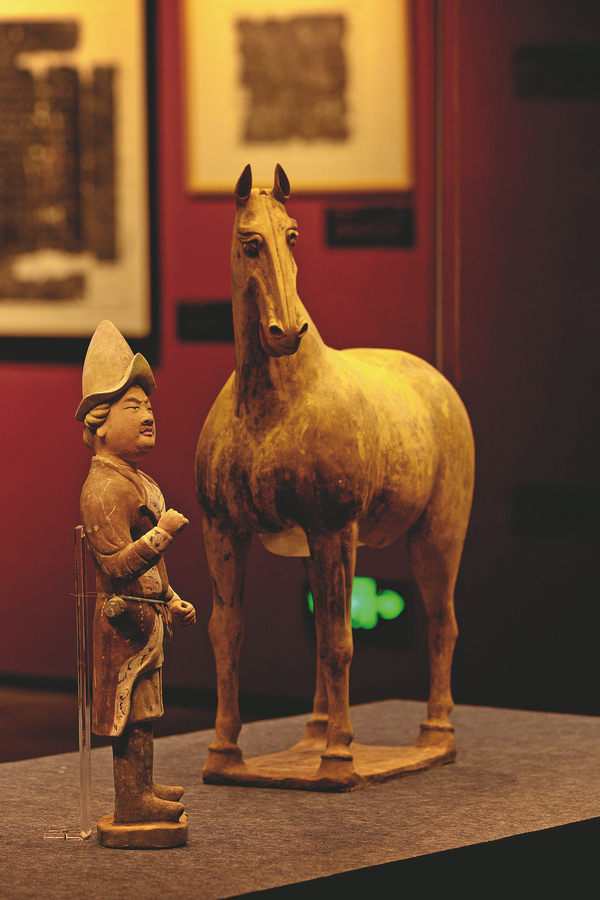 Painted ceramic horse and groom, relics from the collection of the Shaanxi Academy of Archaeology. CHINA DAILY