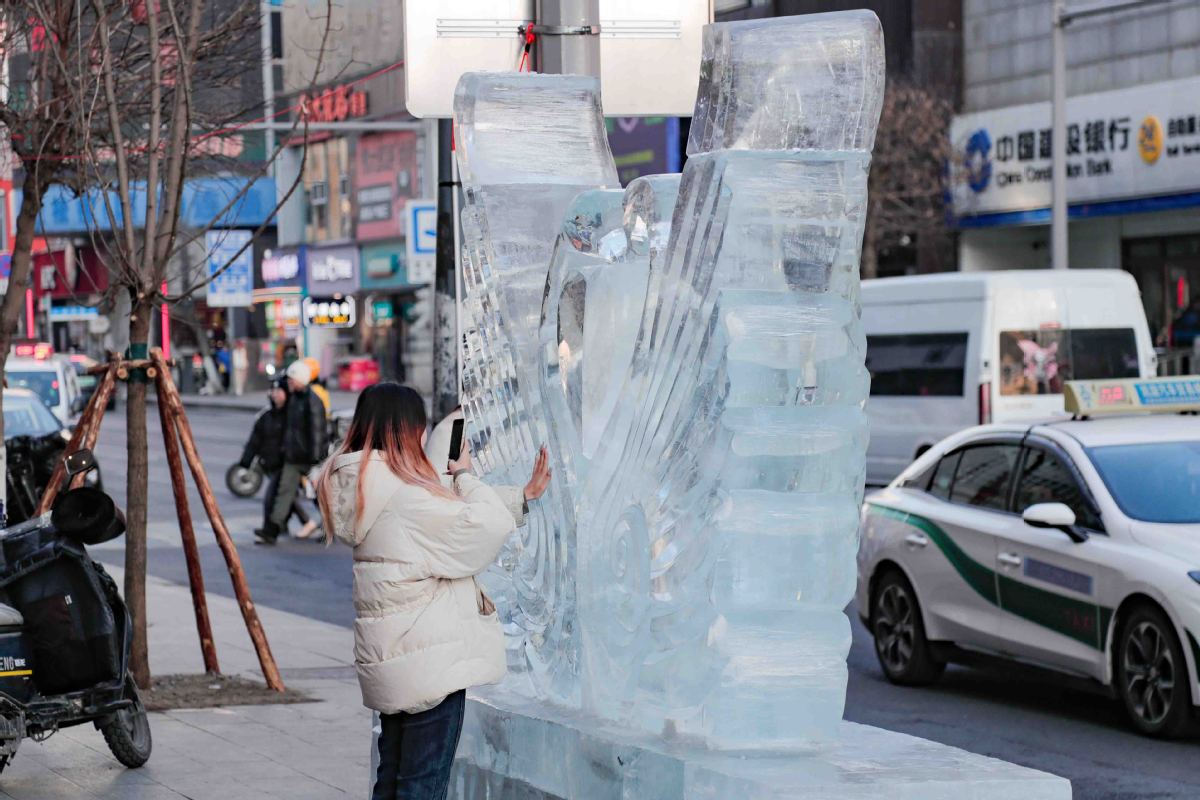 Eighteen ice sculptures appear along Guilin Road in Changchun, Jilin province, attracting local residents and tourists. [Photo by Tian Jiaxin/For chinadaily.com.cn]