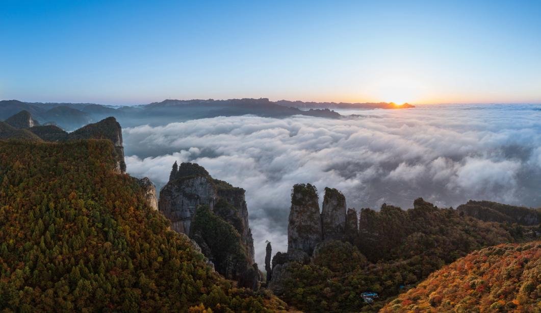 Spanning an area of 679.19 square kilometers, Enshi Grand Canyon - Tenglong Cave Global Geopark in Hubei province offers picturesque views. It features the gurgling clear water in the magnificent canyon, the oddly-shaped rocks in the mysterious karst caves, the colorful bushes where birds are frolicking, and the golden pine forests with rustling fallen leaves. Come and discover the unique charm of Enshi Grand Canyon - Tenglong Cave Global Geopark!