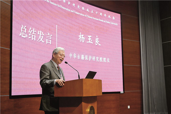 Yang speaks at the 10th anniversary celebration of the institute. [Photo provided to China Daily]