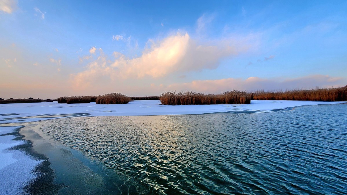 The Sand Lake in Shizuishan, Ningxia Hui autonomous region, reveals an avant-garde beauty in early winter. [Photo by Yue Changhong/Provided to chinadaily.com.cn]