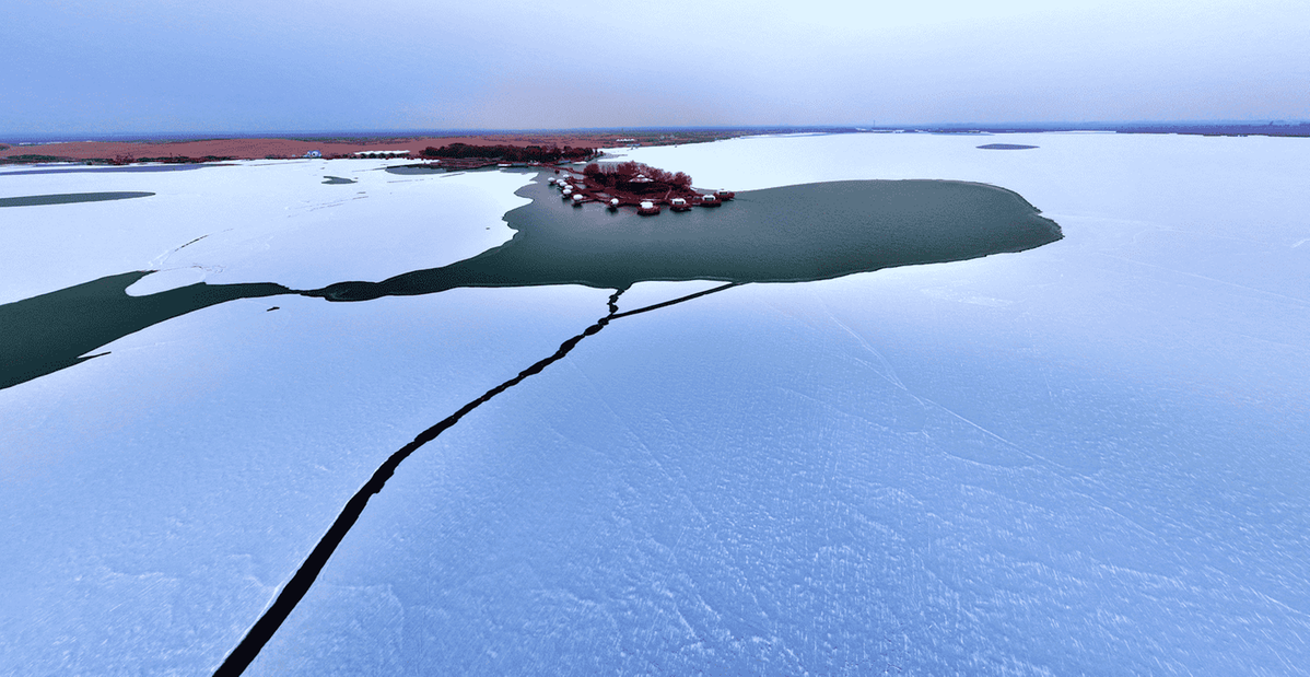 The Sand Lake in Shizuishan, Ningxia Hui autonomous region, reveals an avant-garde beauty in early winter. [Photo by Yue Changhong/Provided to chinadaily.com.cn]