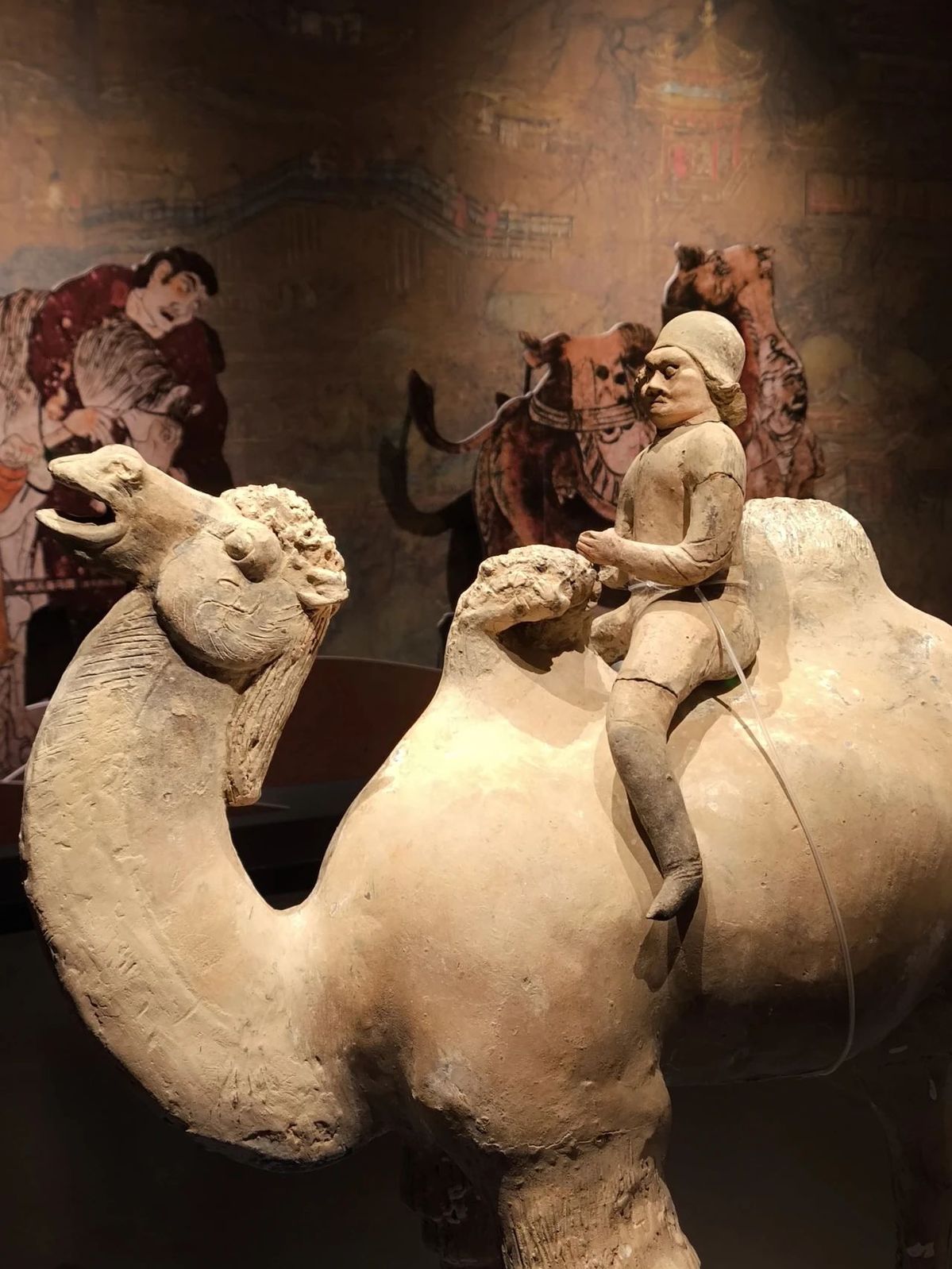 A pottery figurine of a Hu person riding a camel [Photo/Official WeChat account of Jiangxi Provincial Museum]