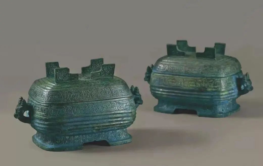 Does this pair of early Spring and Autumn Period (770-476 BC) bronze food containers remind you of your electric hot pot? They are bronze xu (盨), ceremonial vessels for holding grain like millet and rice. Each piece features beast-shaped handles and comes with a perfectly fitting lid. The lid keeps the food moist and can be flipped over to serve as a separate container.