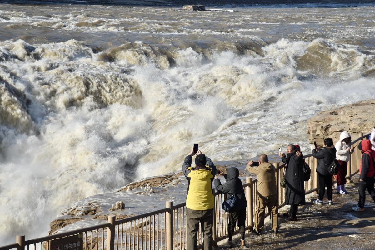 The water in the Hukou section of the Yellow River is currently at a low level, according to the local hydrological department.
