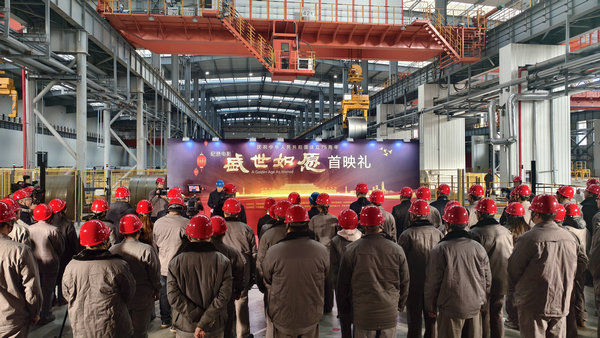 The premiere at the No 2030 production site of Tangsteel Company in Tangshan, Hebei province. [Photo provided to chinadaily.com.cn]
