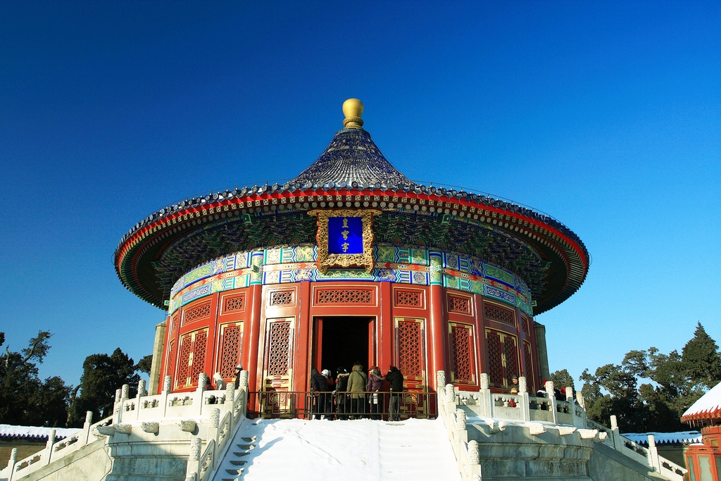 The "Supreme God of Heaven" plaque at the Temple of Heaven in winter [Photo/IC]
