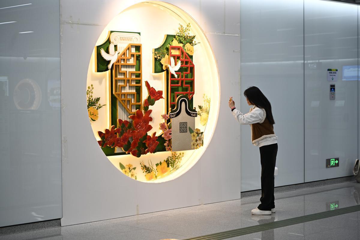 "By organizing and merging the content of Guangzhou's world-class, national, provincial and municipal-level intangible cultural heritage, representative intangible heritage projects were selected for integration design in some key stations of line 11," said Wang Xin, deputy director of the general contracting management center of Guangzhou Metro Design & Research Institute Co.