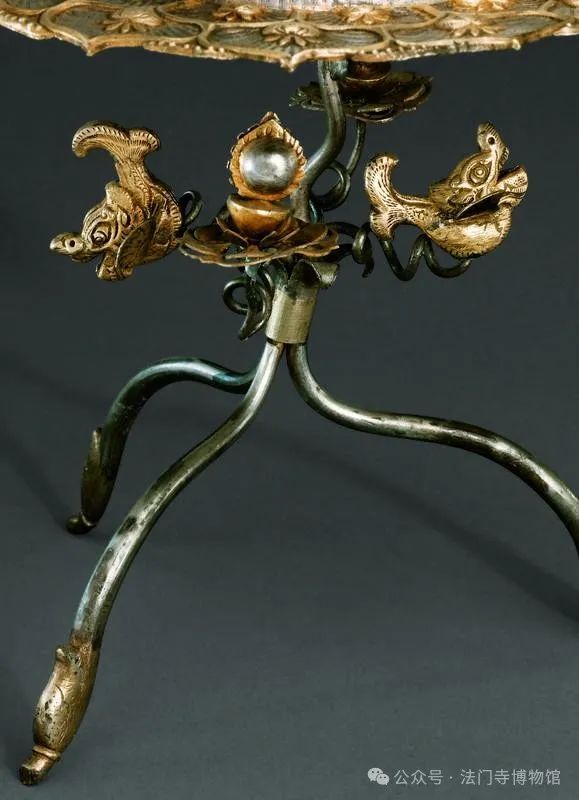 Close-up of the Makara fish and pearl decorations on the salt stand [Photo/Official WeChat account of the Famen Temple Museum]