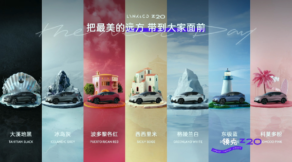 The Lynk & Co Z20 offers seven natural car colors from different islands in different time zones. [Photo provided to chinadaily.com.cn]
