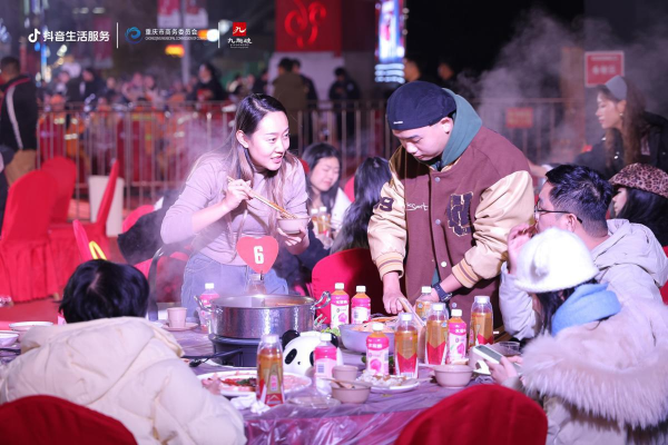 As the highlight of the festival, a grand outdoor hotpot feast for one thousand diners was held at the bustling hotpot booths after the opening ceremony.