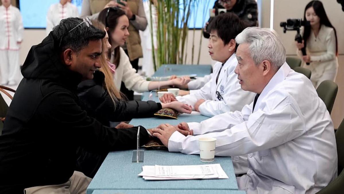 Meanwhile, a Russian student at Nantong University experienced pulse diagnosis for the first time. She said, "The doctor told me that my qior vital energy and blood are fine, and I am really happy." She expressed a strong interest in TCM.