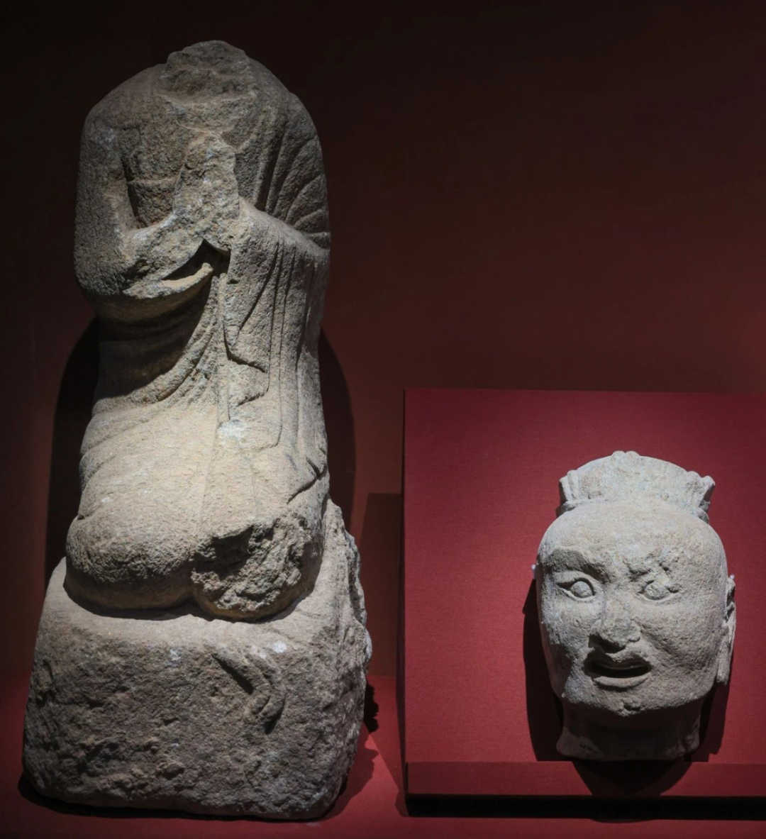 Stone Buddhist sculptures unearthed from the underground chamber of a stupa of the Maijishan Grottoes [Photo/Official WeChat account of the China Grand Canal Museum]