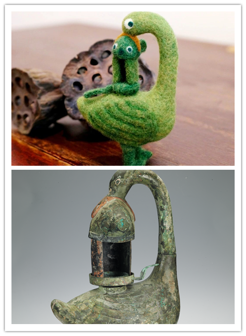 The wool-fret creation inspired by an ancient wild goose-shaped bronze lamp [Photo/Official WeChat account of Shanxi Museum]