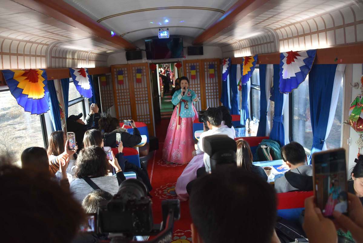 At 8 am, a tourist train departed from Yanbian Korean autonomous prefecture in northeast China, its whistle echoing as it headed toward snow-covered Changbai Mountain. [Photo provided to chinadaily.com.cn]