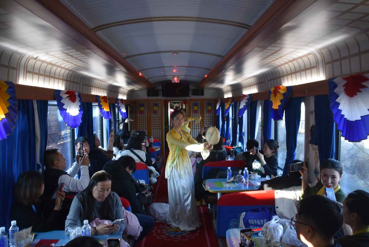 At 8 am, a tourist train departed from Yanbian Korean autonomous prefecture in northeast China, its whistle echoing as it headed toward snow-covered Changbai Mountain. [Photo provided to chinadaily.com.cn]
