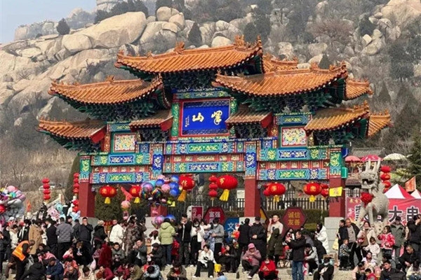 A series of activities, including lucky bell ringing to welcome the New Year and local traditional folk opera performances, mark the beginning of the Yishan blessing temple fair. [Photo/WeChat account: jiningzhengxie]