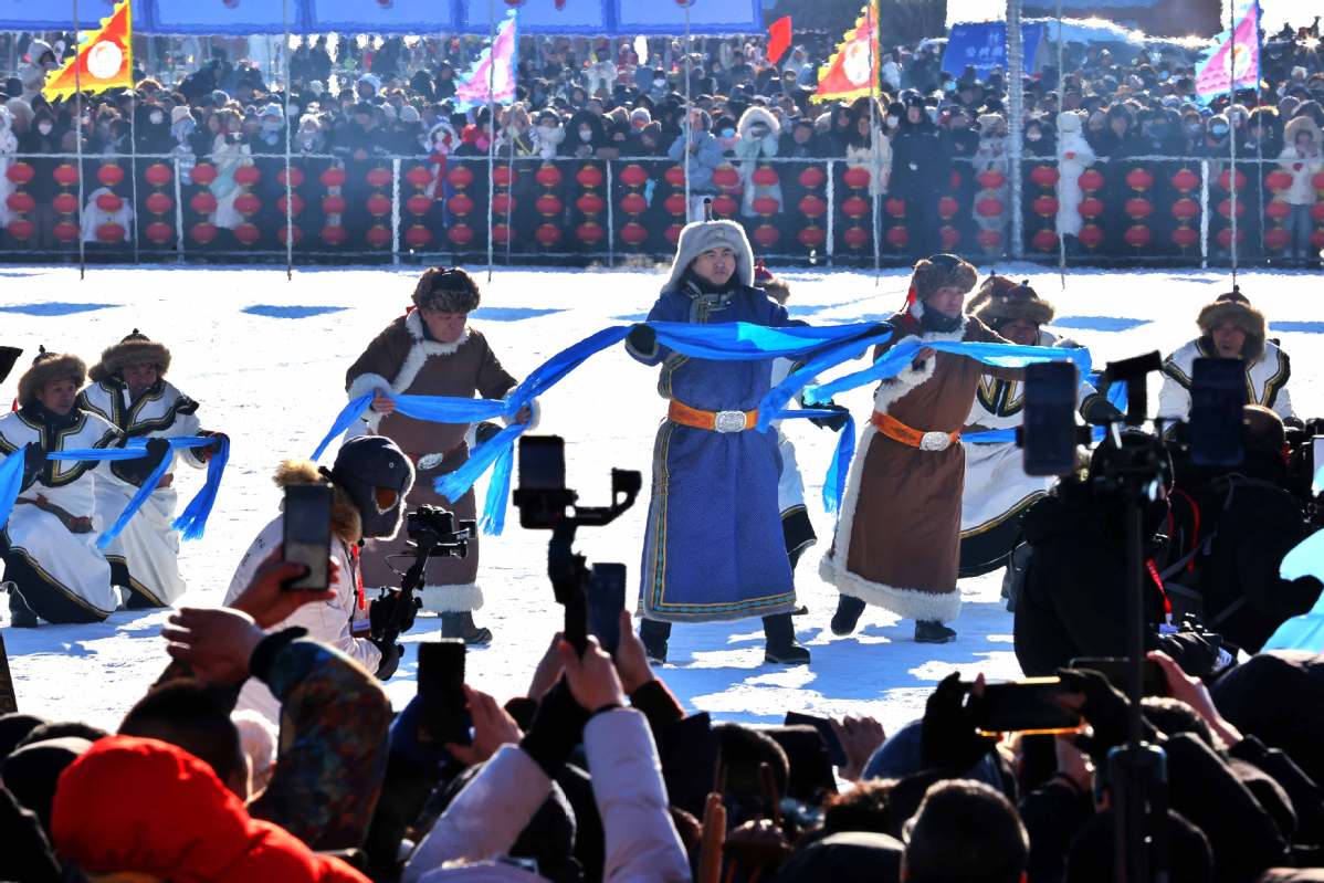 The 23rd Ice and Snow Fishing and Hunting Cultural Tourism Festival kicked off on Saturday at Chagan Lake in Jilin. [Photo by Jiang Dong/chinadaily.com.cn]