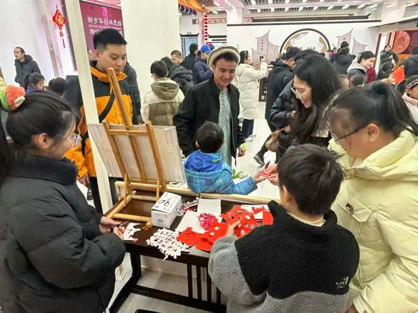 People experience Pingxiang paper cutting at the event on Dec. 22, 2024. [Photo/Chinaculture.org]